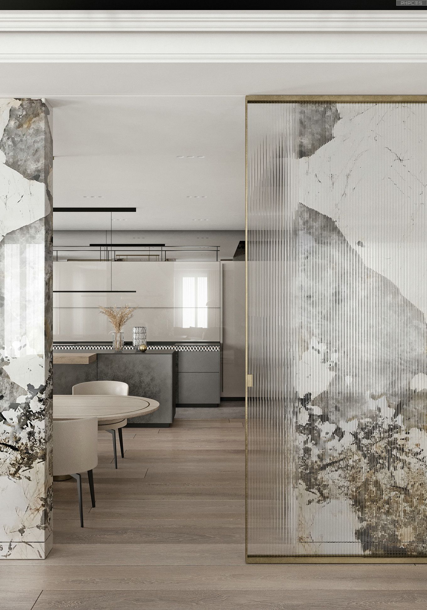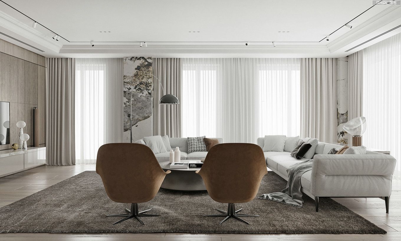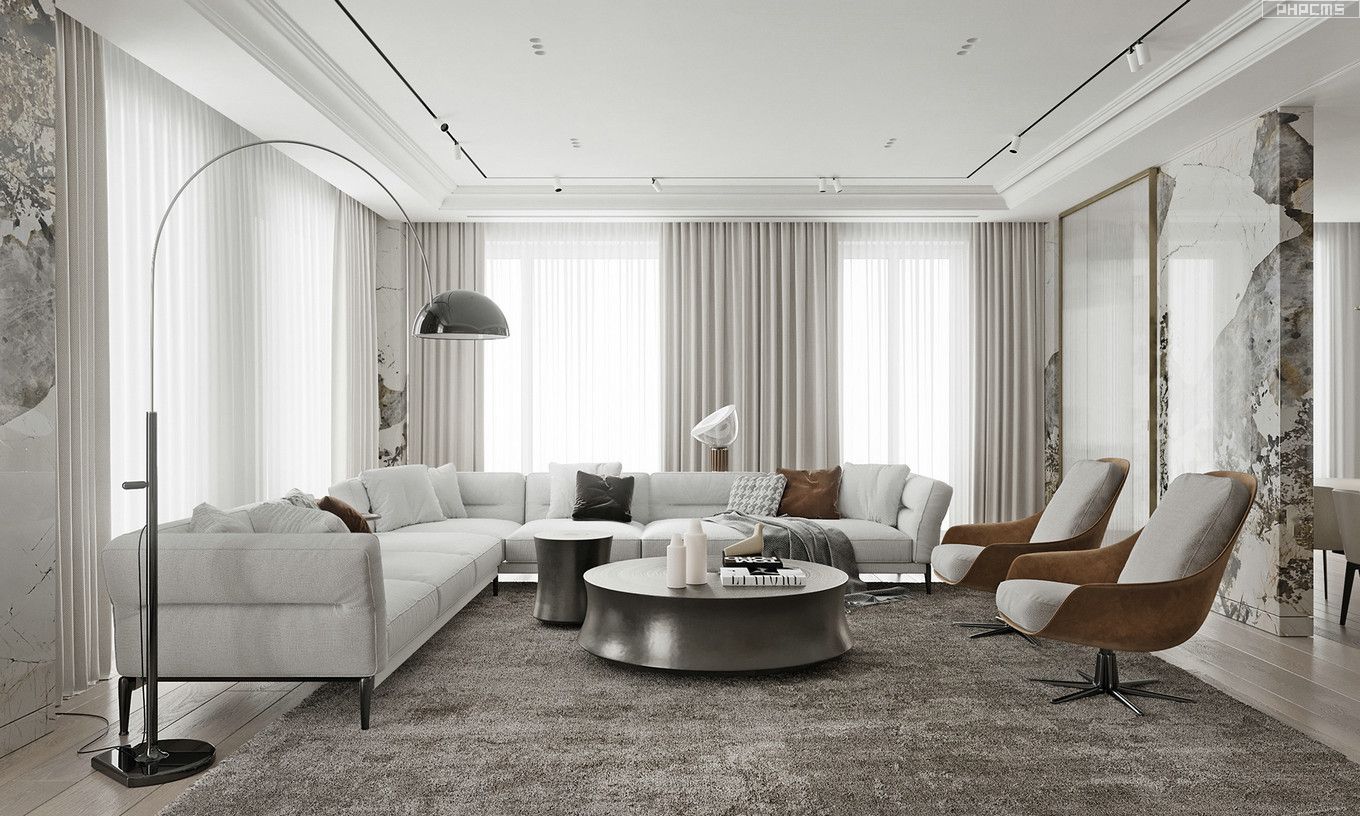 阳光从卷帘中透出到客厅。取消推拉门后,人与景之前不需要留那个过人的距离,是更加的接近景观了